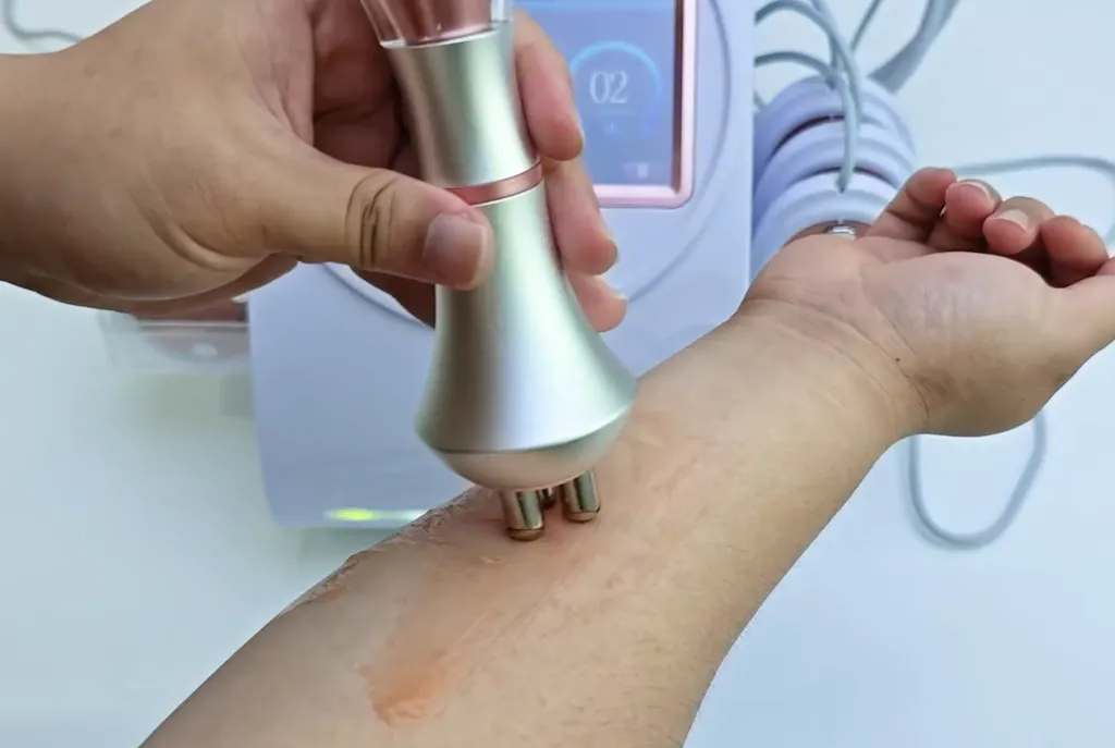 Dotata di 6 testine di massaggio diverse e un set completo di programmi per tutti i tipi di pelle e parti del corpo, per soddisfare le esigenze di cura del corpo, rassodamento della pelle, riduzione del grasso, stimolazione del metabolismo, ecc. Offriamo una garanzia esclusiva di un anno sui nostri dispositivi con un processo di sostituzione semplice. Se avete domande, non esitate a contattare il nostro servizio clienti amichevole.