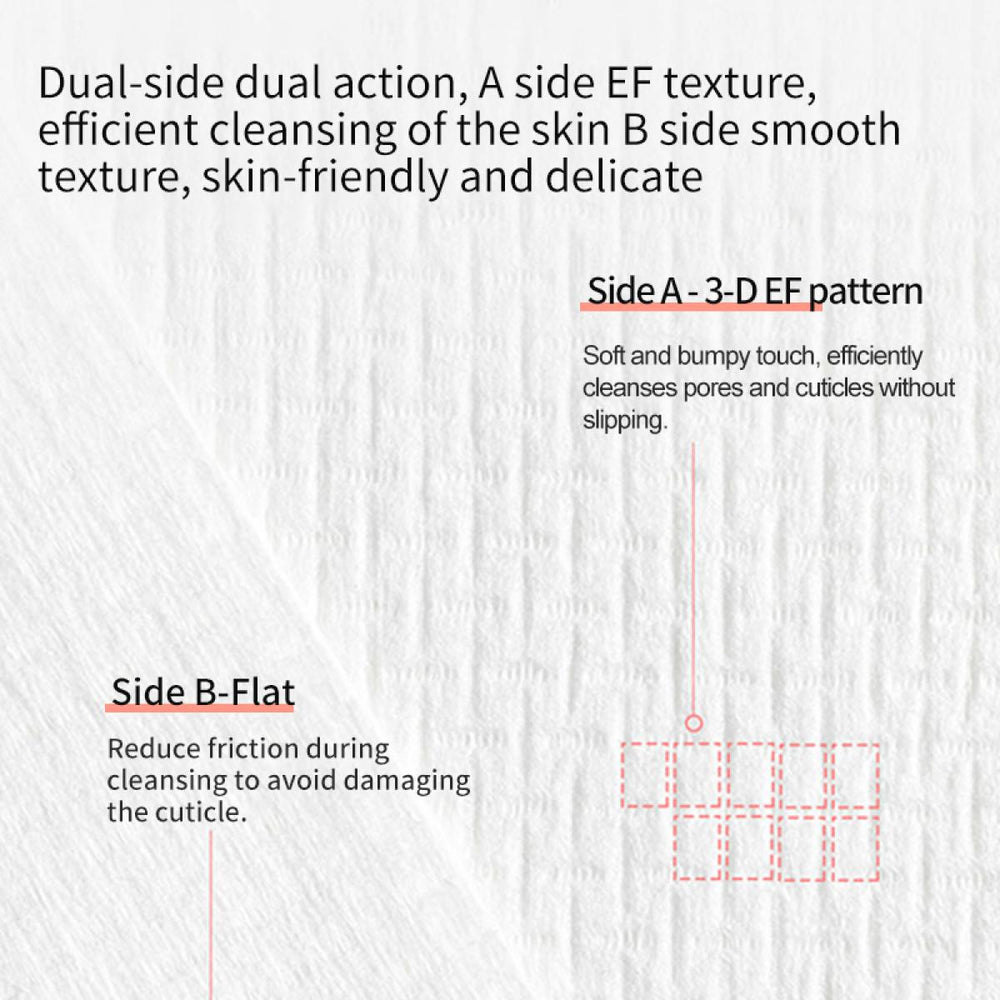 【Prestazioni Intelligenti a Doppia Faccia】Un lato ultra-morbido coccola e prepara la pelle, mentre il lato opposto con trama EF offre una pulizia profonda ideale per la rimozione del trucco e una delicata esfoliazione in un solo passaggio.