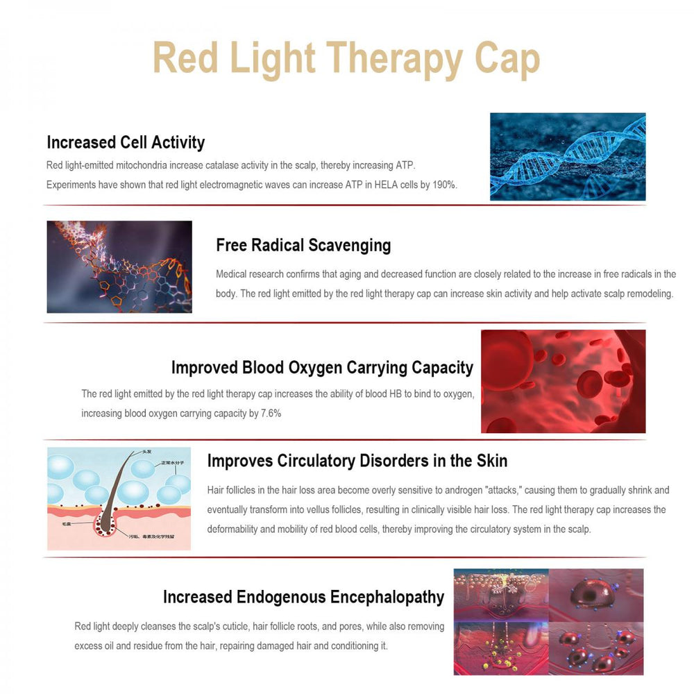 【Efficacia Scientificamente Provata】La tecnologia di fototerapia può aumentare l’energia cellulare ATP fino al 190% e migliorare la capacità di trasporto dell’ossigeno nel sangue del 7,6%. Migliorando la microcircolazione del cuoio capelluto e neutralizzando i radicali liberi, fornisce un apporto ottimale di nutrienti ai follicoli, rafforza le radici dei capelli e aiuta a ritardare la caduta.