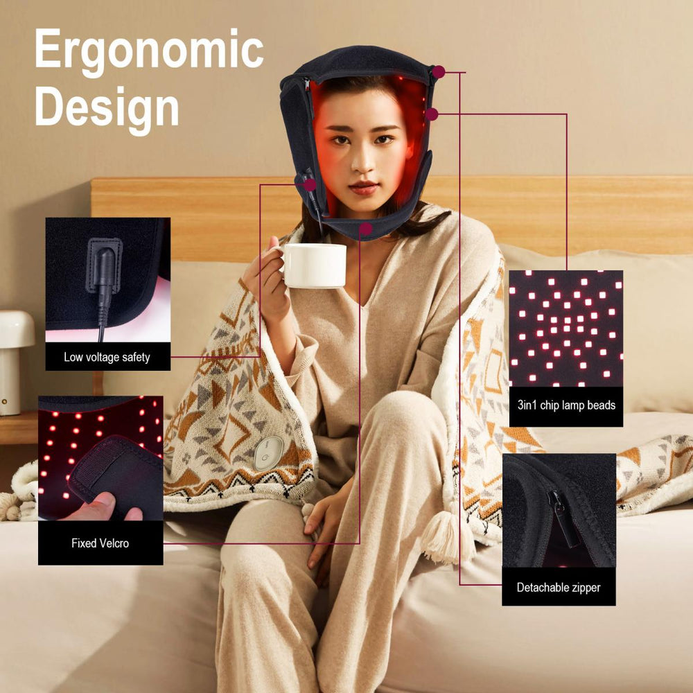 【Design Confortevole e Facile da Usare】Realizzato con materiali delicati sulla pelle e dotato di un design regolabile, garantisce una vestibilità comoda e aderente. Compatibile con alimentazione tramite power bank, consente una cura del cuoio capelluto pratica ed efficace in qualsiasi momento, sia a casa, in ufficio o in viaggio.