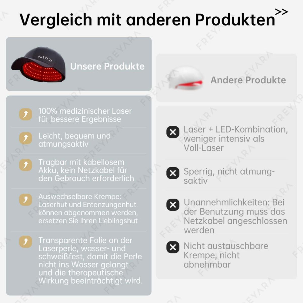 Da un anno utilizzo regolarmente la cuffia per la terapia laser sull'attaccatura dei capelli, per 30 minuti a sere alterne. Notizia dell'ultima ora: l'attaccatura dei miei capelli è scomparsa e sono diventati più folti. Grazie, FREYARA!
