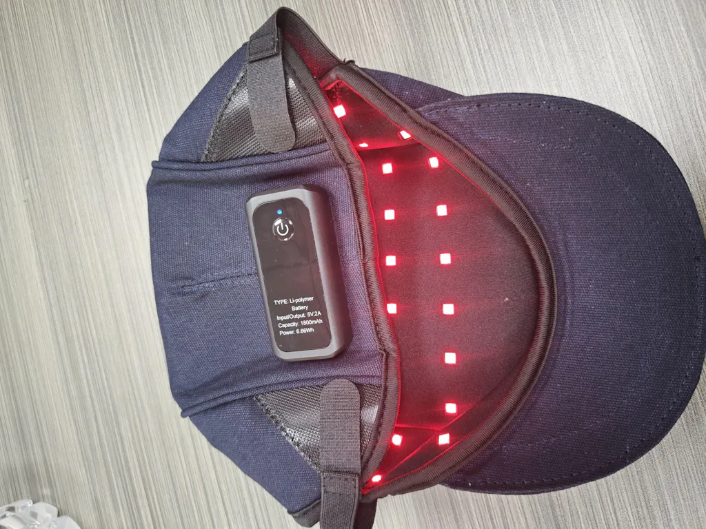Indossare la cuffia per fototerapia a luce rossa sulla testa.