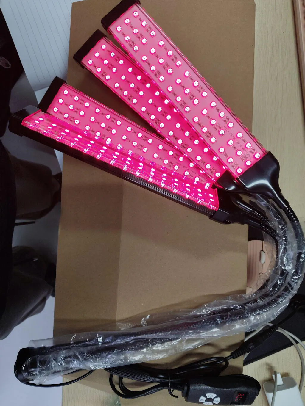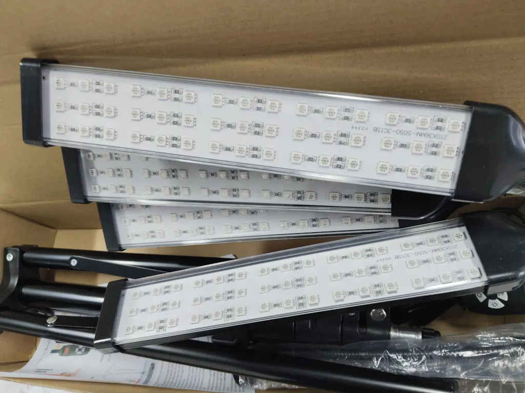 I bracci luminosi mi ricordano le lampade da coltivazione. Il treppiede è regolabile e i bracci possono essere posizionati a seconda delle esigenze. Sono inclusi anche occhiali di sicurezza, che consiglio vivamente di indossare.