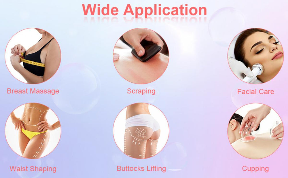 La macchina per vacuum terapia con coppette per glutei può essere utilizzata per rassodare e tonificare la pelle, per massaggi terapeutici, modellamento del corpo e dimagrimento, coppettazione e Gua Sha.