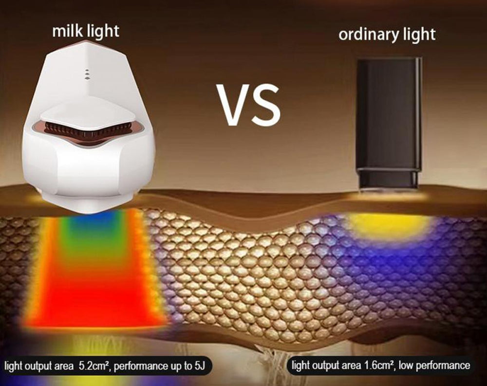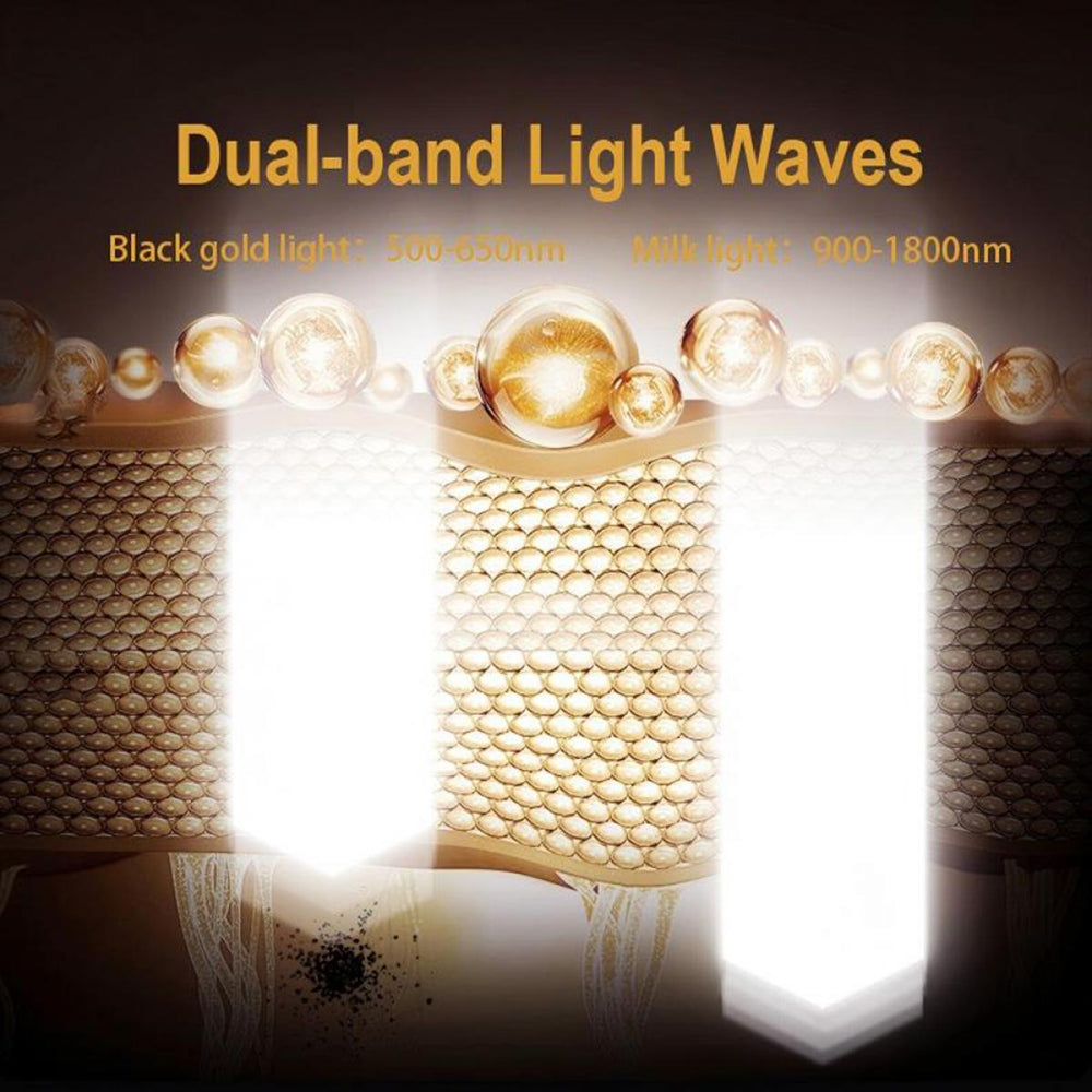 【Fototerapia a Doppia Lunghezza d’Onda per Rinnovo Multistrato della Pelle】Combina luce Black Gold 500-650 nm per trattare macchie scure e arrossamenti con luce Milk 900-1800 nm che stimola in profondità il collagene, agendo sia sulla pigmentazione superficiale che sul rilassamento cutaneo in un unico dispositivo.