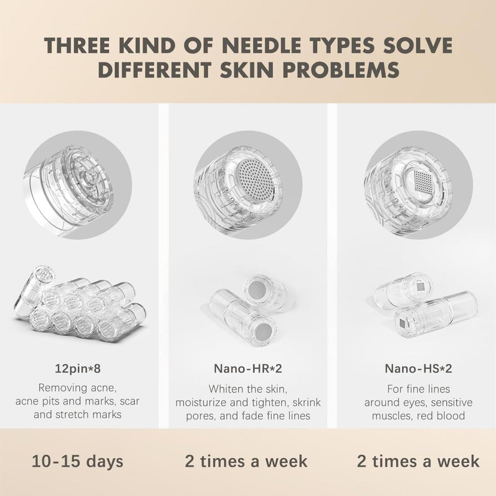 Garantisce risultati quasi professionali, direttamente a casa tua. Tuttavia, se non hai familiarità con il microneedling, potrebbe volerci un po' di tempo per padroneggiare la tecnica. Consiglio quindi di procedere con cautela per evitare irritazioni cutanee. Inoltre, sono necessarie cartucce di ricambio, il che può aumentare i costi nel tempo.