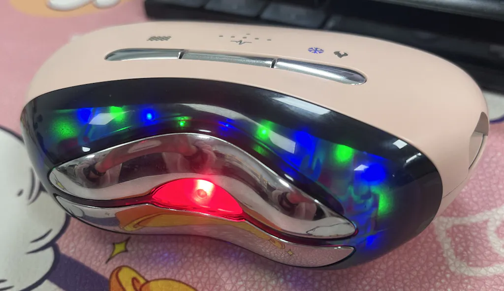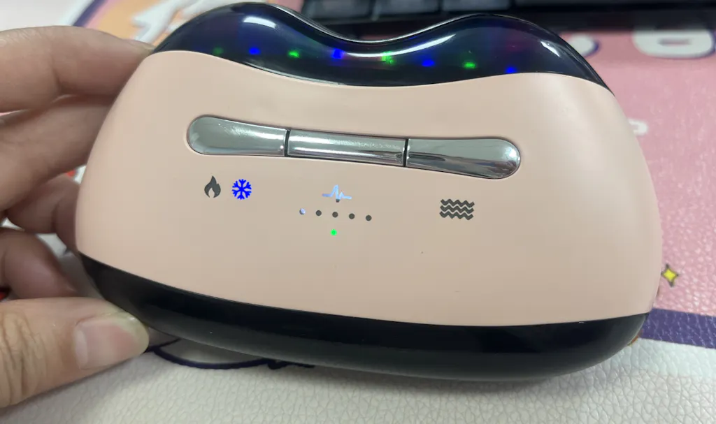 Quando il dispositivo è acceso, premi il tasto caldo/freddo per passare tra le modalità compressa fredda e compressa calda. La spia del tasto mostra il blu per la compressa fredda, il rosso per la compressa calda e si spegne quando nessuna funzione fredda/calda è attiva.
