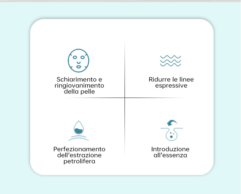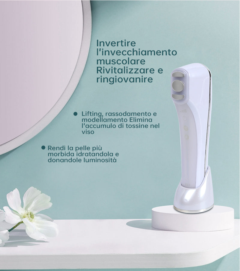 【Precisione Dual-Mode per Occhi e Viso Completo】 Passa tra la modalità Occhi dedicata (per trattare le zampe di gallina e le borse sotto gli occhi) e la modalità Viso (per fronte, guance e mandibola), con protocolli di trattamento ottimizzati per ciascuna zona.