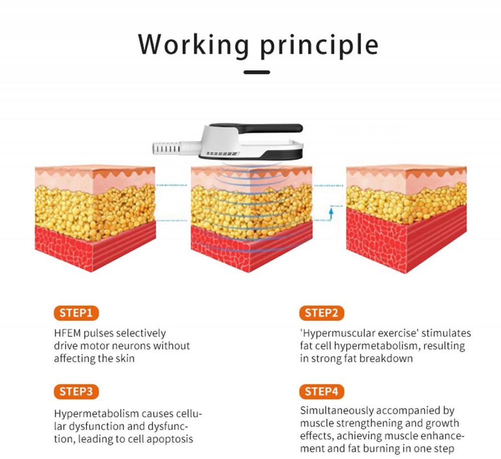 Le contrazioni muscolari estremamente intense richiedono un grande dispendio energetico, favorendo la degradazione delle cellule adipose adiacenti. Questo processo porta a una naturale apoptosi e a una riduzione efficace dello strato di grasso.