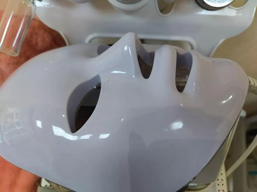 Maschera LED: Pulire la pelle e applicare una maschera di carta sul viso. Impostare l'intensità della maschera su 5 e lasciare la maschera LED sul viso per 15 minuti.