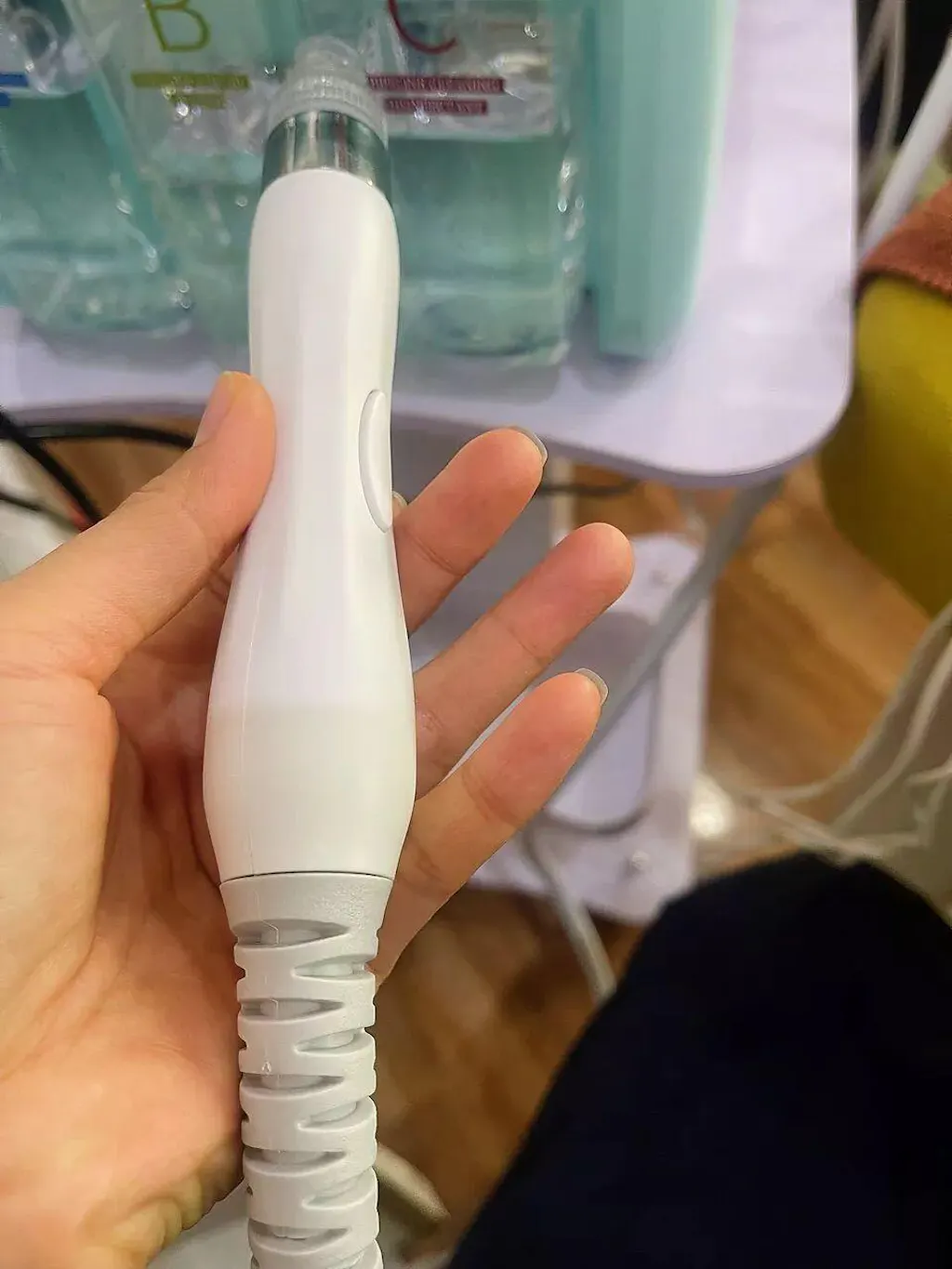 Hydra Pen: Selezionare la bottiglia della soluzione, regolare il vuoto e l'acqua. Premere il tasto di avvio nel sistema, toccare l'icona della funzione corrispondente sullo schermo e premere il pulsante sulla testina. Se si seleziona la bottiglia D per la pulizia della pelle, attivare la funzione H2O2 nel sistema. Dopo il trattamento, selezionare la bottiglia D, disattivare la funzione H2O2 e bloccare la punta della testina per 2 minuti con il dito per pulire il tubo della testina.