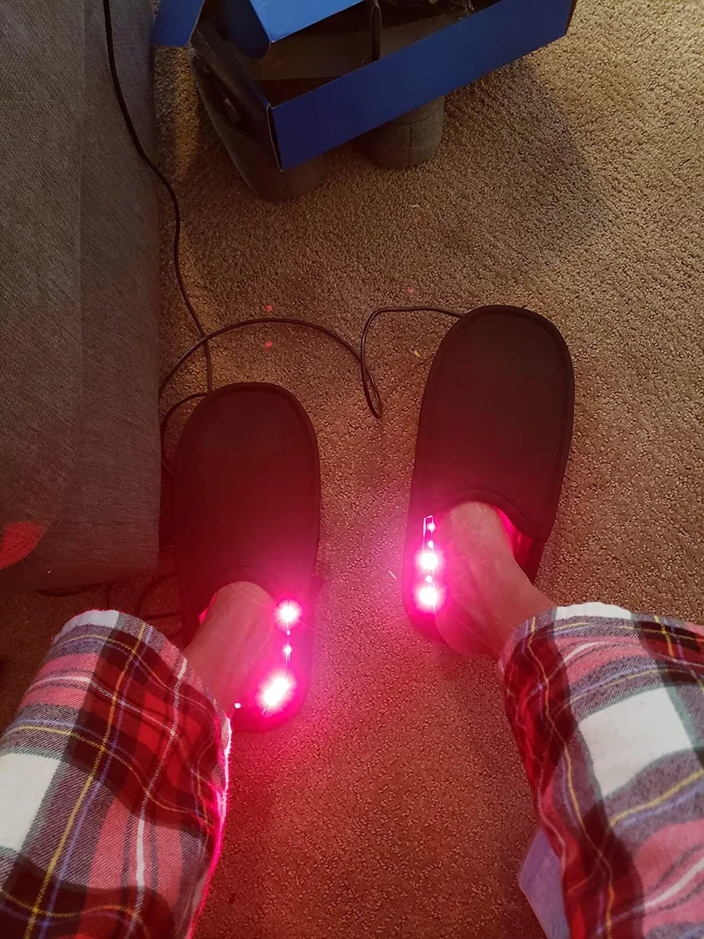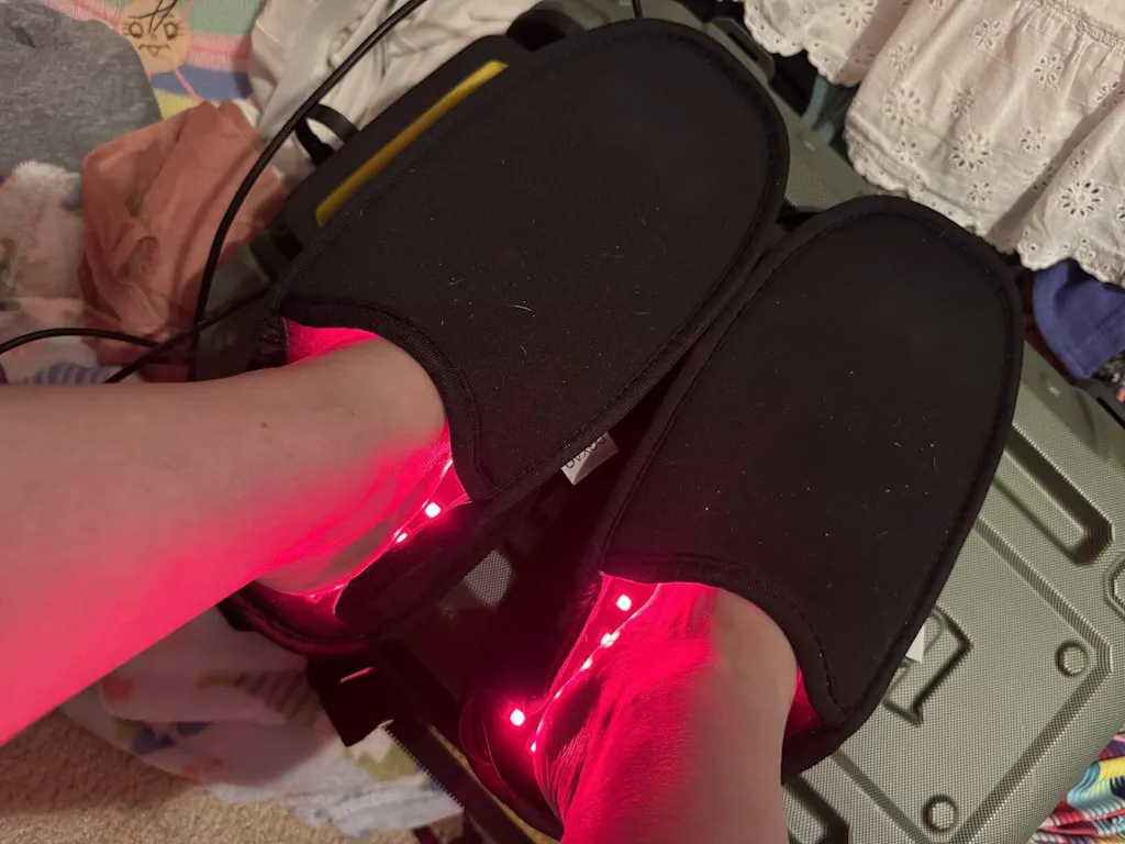 Possiedo già altri dispositivi per la fototerapia, ma questi mi servivano specificamente per i miei piedi. Soffro di neuropatia diabetica e di recente mi sono infortunato tre unghie dei piedi. Il delicato calore della luce rossa mi ha dato un incredibile sollievo sui piedi doloranti fin dalla prima volta che ho indossato le pantofole. Ancora più importante, le ferite alle unghie dei piedi sono guarite molto rapidamente. Su tre dita, le unghie hanno dovuto essere rimosse da un medico, causando sanguinamento e secrezioni dalle dita. Dopo aver usato le pantofole, il sanguinamento si è fermato e il rossore è scomparso.