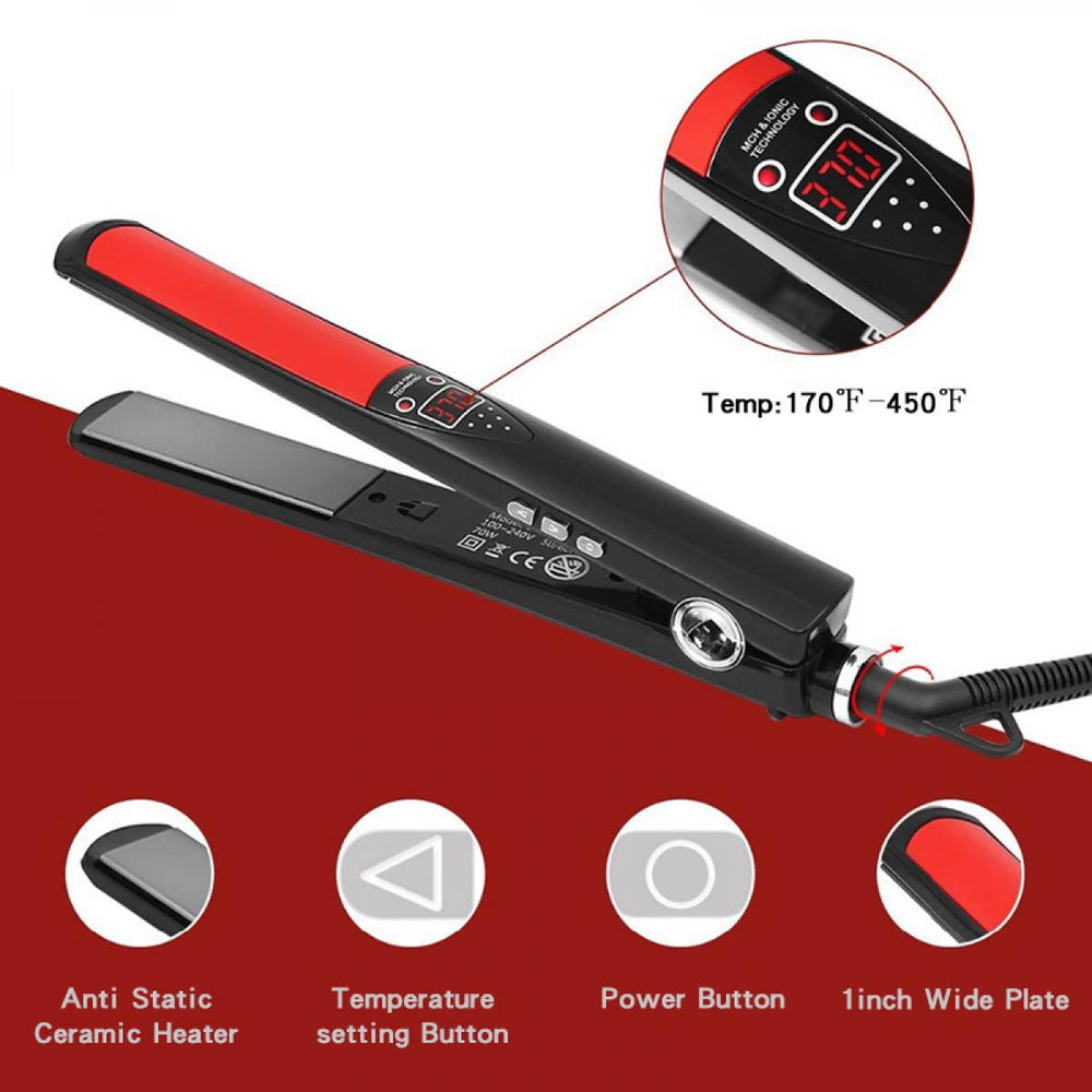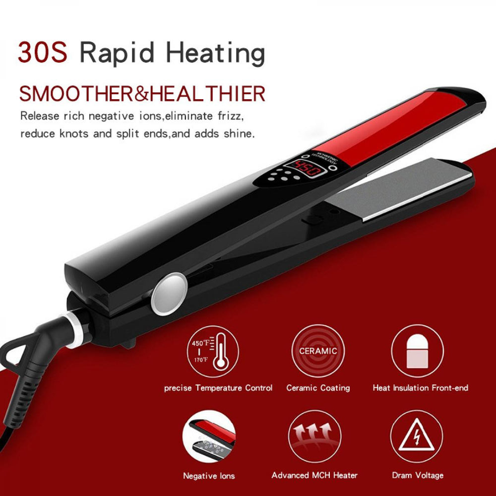 Il display LCD appare solo dopo l'accensione e ti aiuta a impostare la temperatura desiderata. 10 impostazioni di temperatura (250℉-450℉) per tutti i tipi di capelli, lasciando i tuoi capelli lucidi e sani dopo aver trovato la temperatura giusta per il tuo tipo di capello. Si riscalda in 15 secondi fino a 450℉.