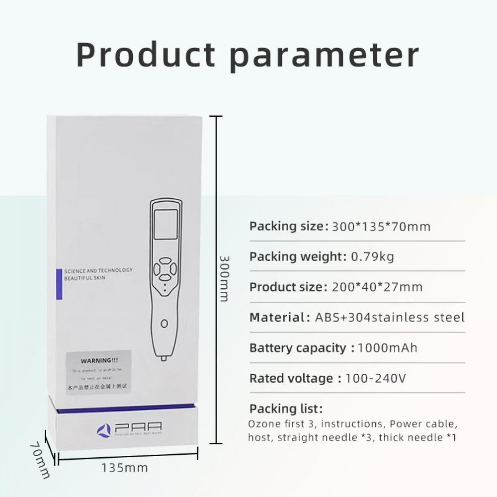 【Sterilizzazione con ozono + Rinnovamento cutaneo al plasma】Grazie al plasma ad alta frequenza (100 kHz) combinato con tecnologia all’ozono, questo dispositivo purifica profondamente la pelle, stimola la produzione di collagene e restringe i pori. Non invasivo, delicato e sicuro – ideale per combattere i primi segni dell’invecchiamento alla radice.