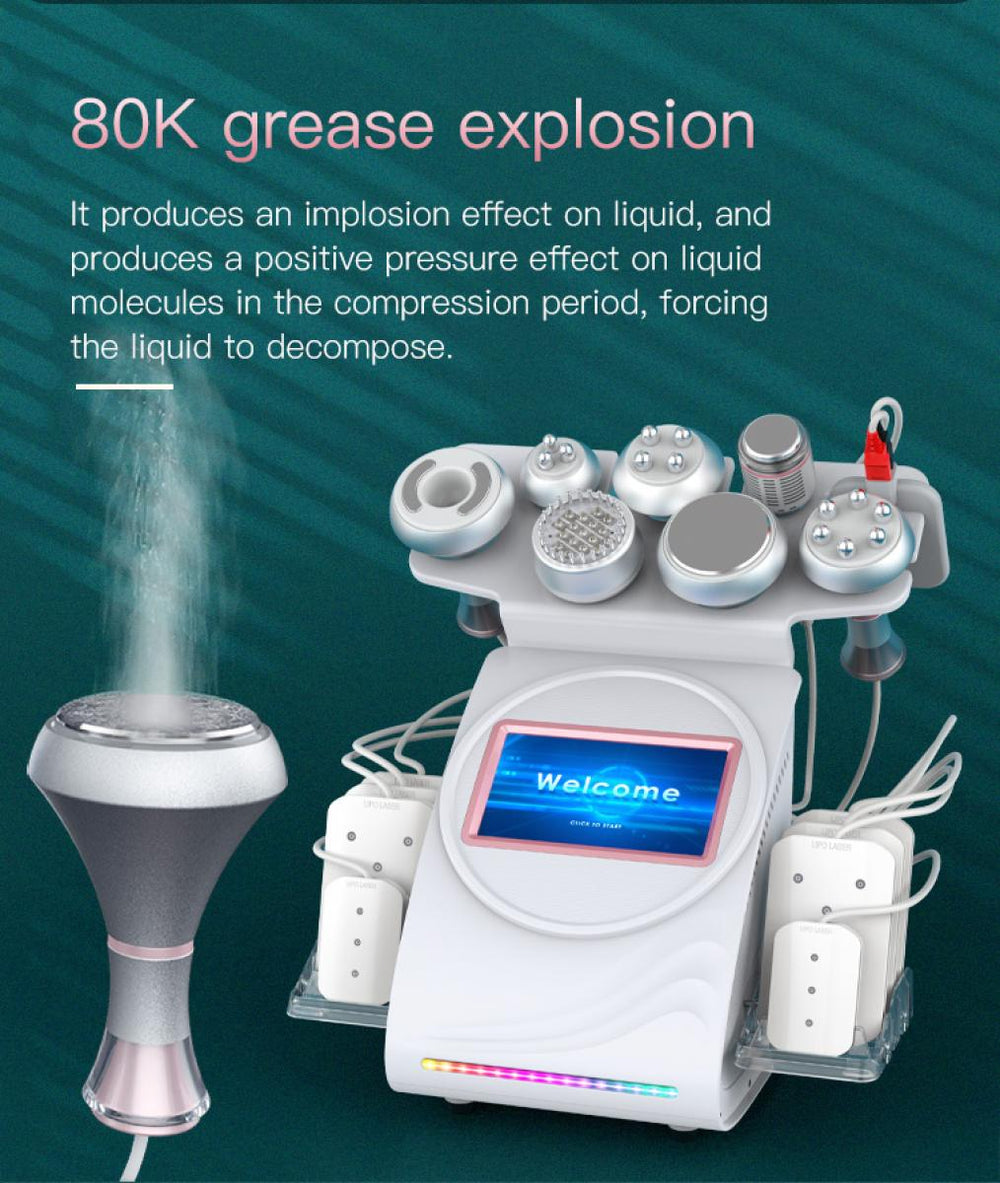 【Rimozione del grasso superiore】: Grazie all’uso della cavitazione ad ultrasuoni a 80 kHz, le cellule adipose vengono efficacemente disgregate, offrendo un’eccellente rimozione del grasso e trattamento della cellulite.
