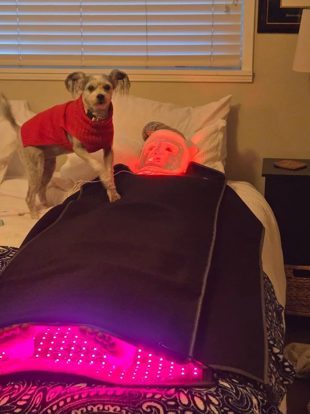 Ho pagato un sacco di soldi per la terapia con luce rossa in vari posti e ho dovuto recarmi lì. Ora ottengo gli stessi risultati, se non addirittura migliori, comodamente da casa mia. È morbido, confortevole e terapeutico! Mi ha aiutato con il dolore. Dormo meglio quando lo uso. Possiedo anche il viso con luce rossa, la cintura con luce rossa e la pedana vibrante. Penso che sia fantastico che FREYARA offra una garanzia a vita!