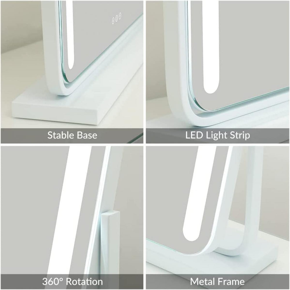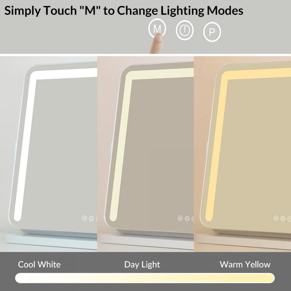 Puoi scegliere la tua illuminazione preferita con il pulsante touch e tre opzioni di temperatura colore: luce bianca calda (2700 K), bianca neutra (3500 K) e luce diurna fredda (5500 K). Inoltre, supporta una regolazione della luminosità dal 20% al 100% e offre fino a 50.000 ore di funzionamento continuo. Questo specchio è ideale per trucco quotidiano, trucco da festa e altre occasioni.