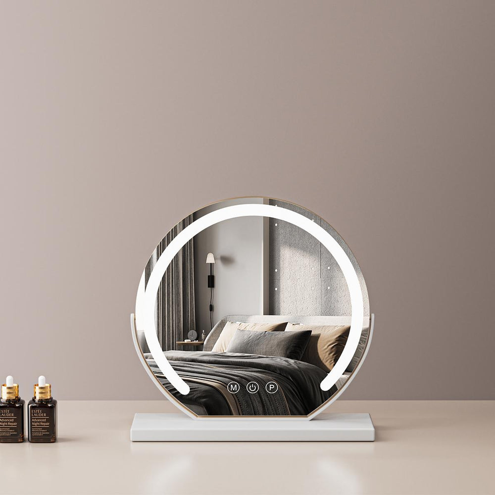 Specchio da trucco illuminato, circondato da luce LED con impostazioni luce naturale/luminosa/calda, la luminosità regolabile si adatta alle tue esigenze personali di trucco.
