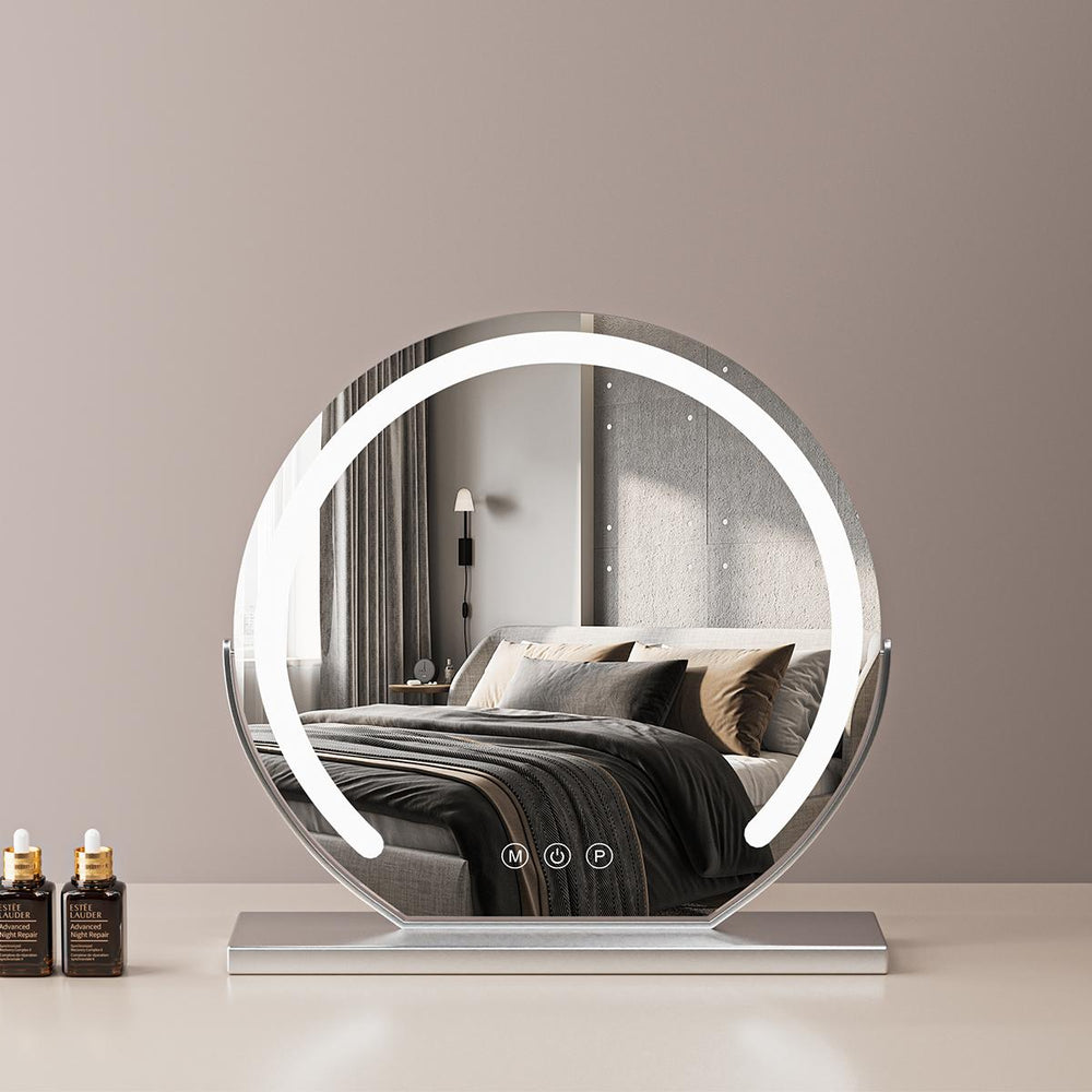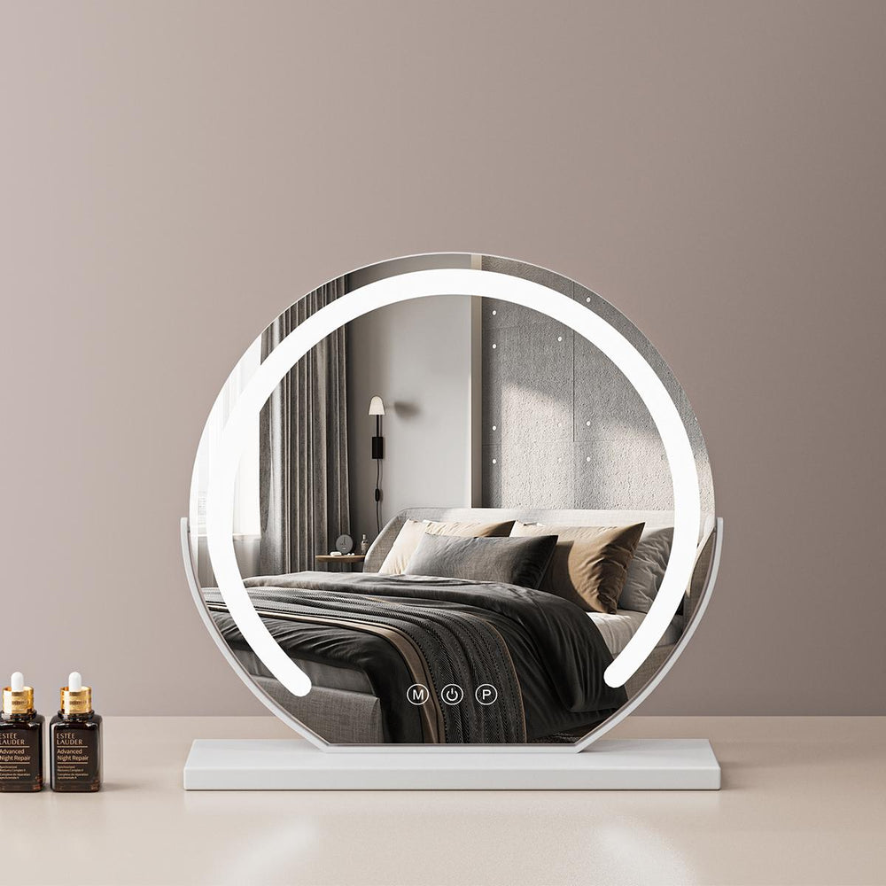 Specchio per trucco illuminato, circondato da luce LED con impostazioni di luce naturale/luce fredda/luce calda, la luminosità regolabile si adatta alle tue esigenze personali di trucco.